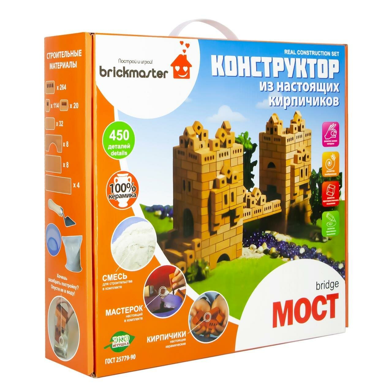 Конструктор Построй и играй! Briсkmaster "МОСТ" из настоящих кирпичиков (450 деталей) 105пл