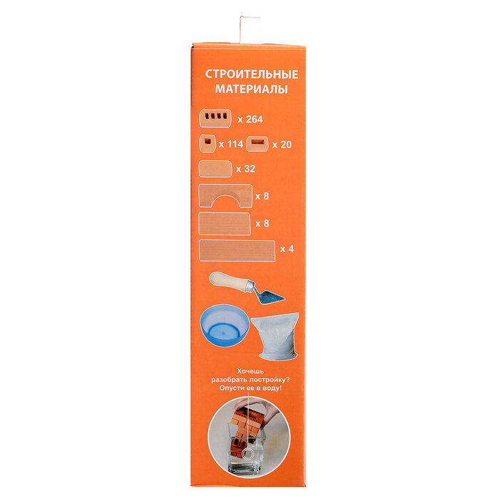 | Дополнительная информация | Смесь для скрепления состоит из песка и крахмала, поэтому она совершенно безвредна. Она легко растворяется в воде, что позволяет многократно перестраивать уже собранное здание. Чтобы разобрать готовое сооружение, нужно просто опустить его в воду на несколько часов. Кирпичи от этого не пострадают. Их просто нужно будет просушить, и можно вновь начинать строительство. |