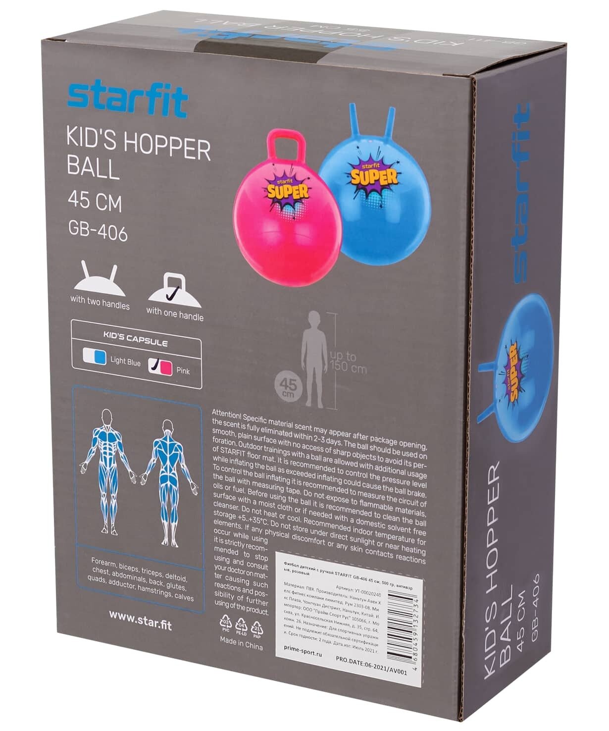 Фитбол дет.с ручкой STARFIT GB-406 45см,500гр,антивзрыв,голуб.,УТ-00020239, 1610120