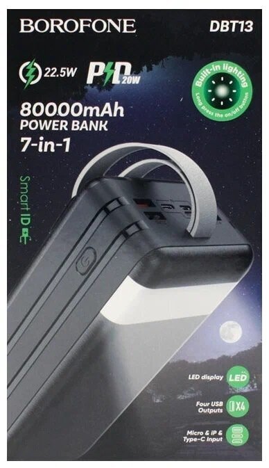 Купить Powerbank Borofone DBT13 80000mAh с фонариком - удобное и мощное зарядное устройство для мобильных устройств