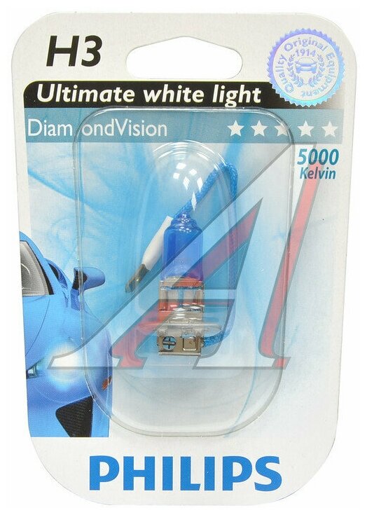 Лампа автомобильная PHILIPS DiamondVision H3 55W PK22s 5000K (бл.) 12V, 1шт, 12336DVB1