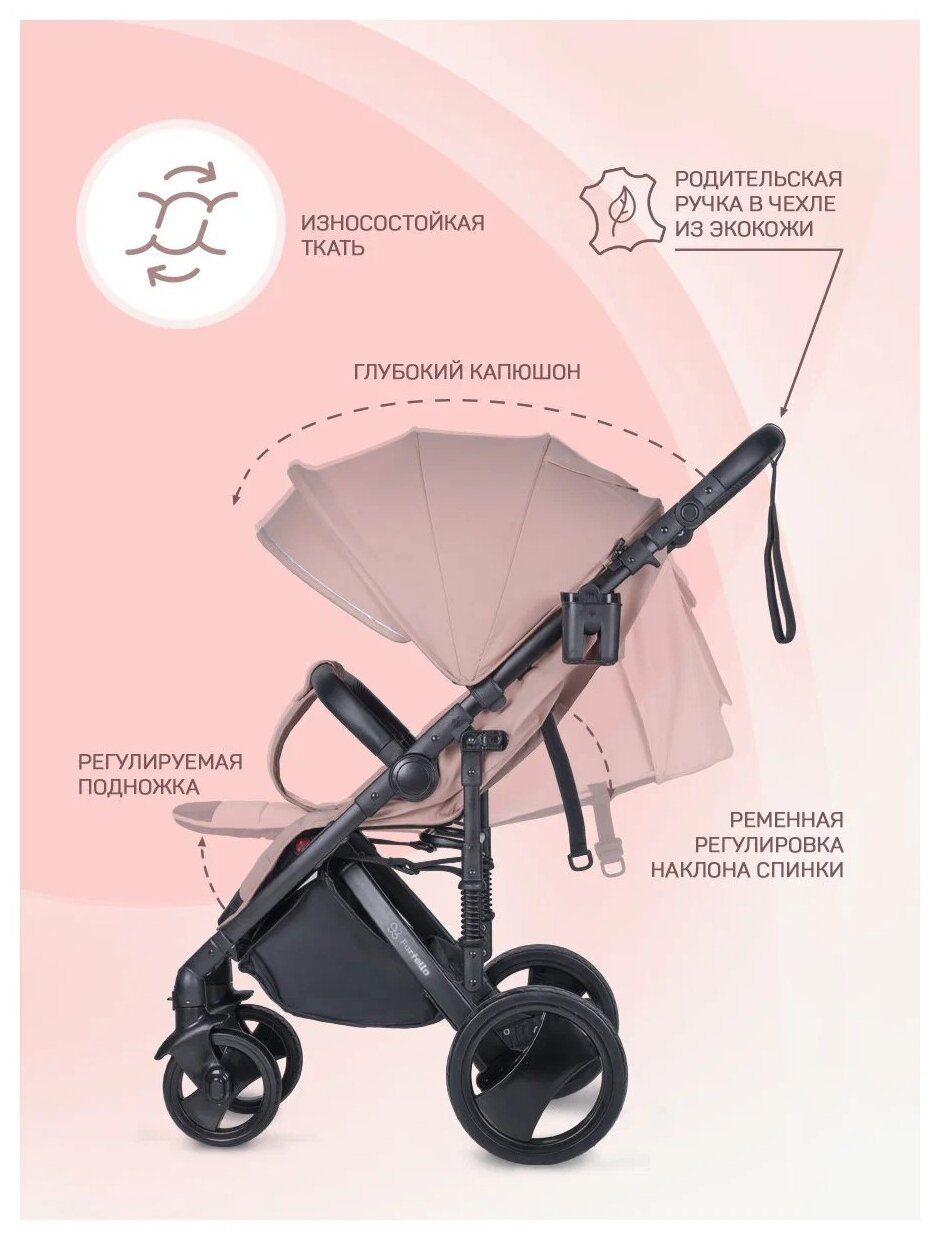 СохранитьПрогулочная коляска детская Farfello Bino Angel Plus 2022 / всесезонная / полог для ног / цвет пудровый интересное: