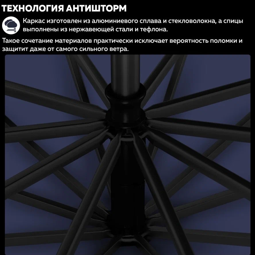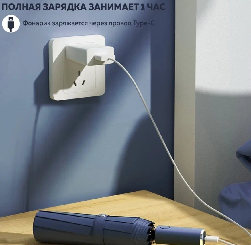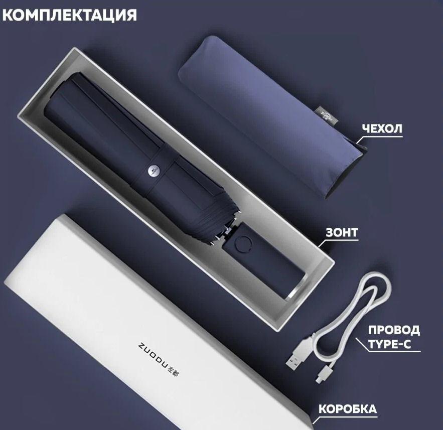 | Дополнительная информация | Зонт Автоматический Umbrella Smart LedLight Blue с усиленным фонариком; кабель для зарядки |