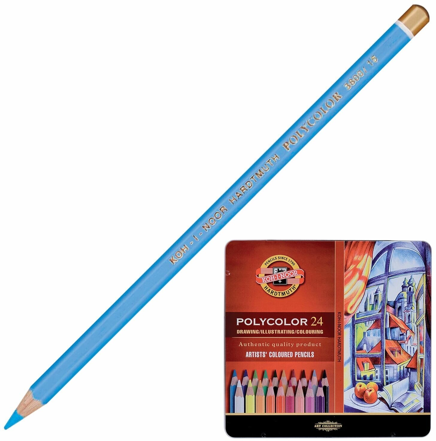 Карандаши цветные художественные KOH-I-NOOR «Polycolor», 24 цвета, 3.8 мм, металлическая коробка