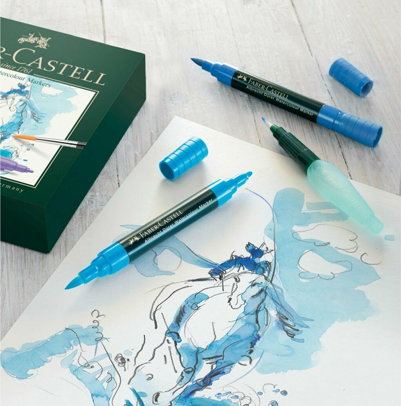Набор акварельных пигментированных. маркеров Faber-Castell "Albrecht Dürer" 30 цветов, двухсторонние, кистевидный/пулевидный