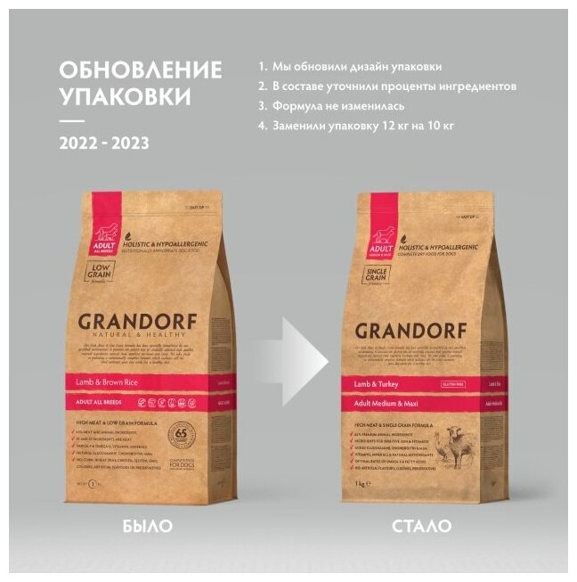 GRANDORF SINGLE GRAIN DOG ADULT MEDIUM & MAXI BREEDS LAMB & TURKEY низкозерновой для взрослых собак средних и крупных пород с ягненком и индейкой 10 кг