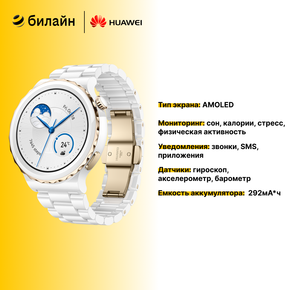 СохранитьУмные часы HUAWEI WATCH GT 3 Pro NFC RU, белый/золотистый интересное: