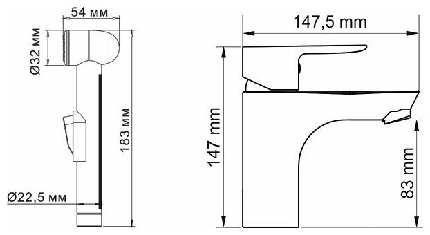 | Тип устройства | смеситель с гигиеническим душем |