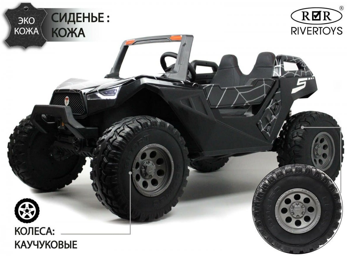 Детский электромобиль RiverToys A707AA 4WD черный Spider с дистанционным управлением, двухместный, полноприводный
