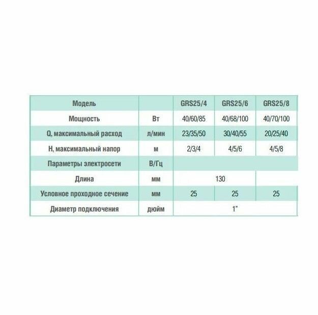 Насос циркуляционный GRS 25/6 130 мм гайки и кабель в комплекте PUMPMAN GRS25/6-130