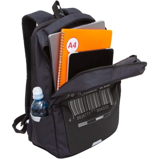 Купить Рюкзак Grizzly, 29*41,5*18см, 2 отделения, 3 кармана, анатомическая спинка, черный