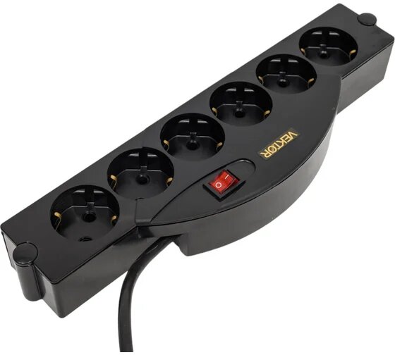 Сетевой фильтр VEKTOR SOFT, 6 розеток, с/з, 10А / 2200 Вт 5 м черный