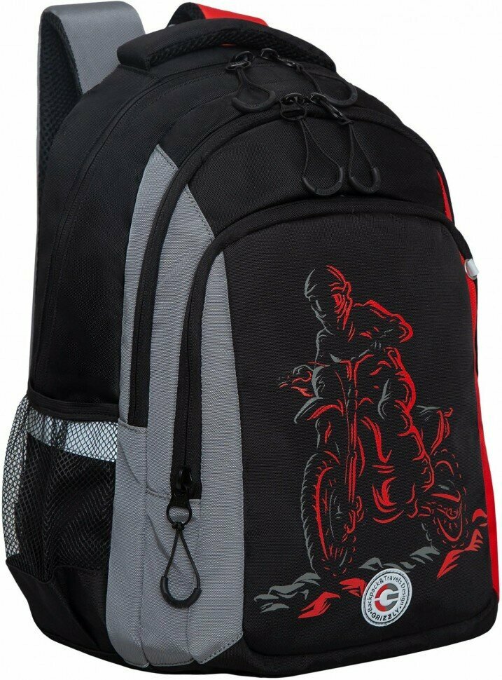 Купить Рюкзак школьный Grizzly RB-352-1/1 серый - красный