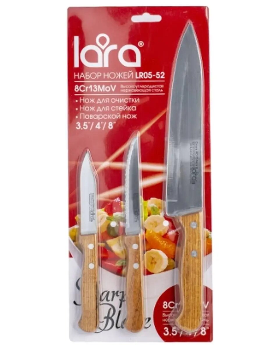 СохранитьНабор ножей LARA LR05-52, 3 предмета: Для очистки, Для стейка, Поварской нож. деревянная буковая ручк интересное: