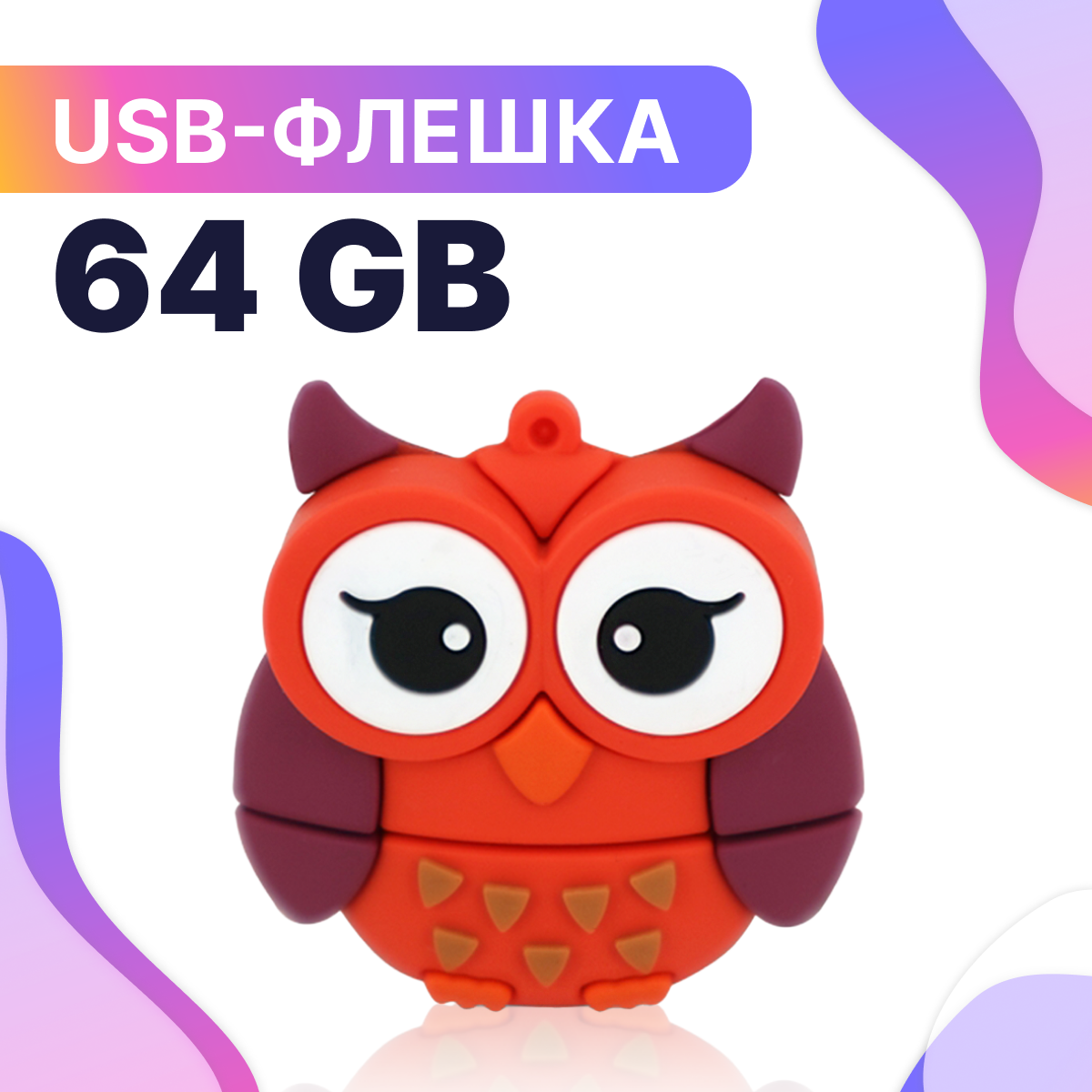 USB Флешка / Оригинальная подарочная флешка USB 64GB / Флеш память ЮСБ 64 ГБ / Внешний накопитель USB Flash Drive (Сова розовая)