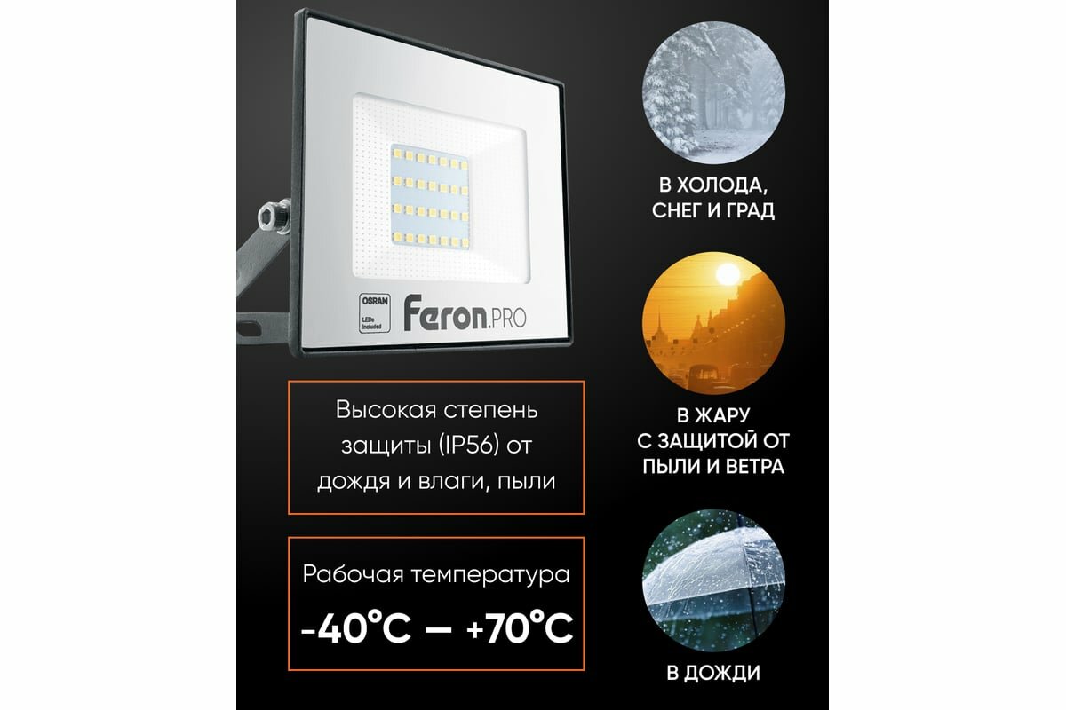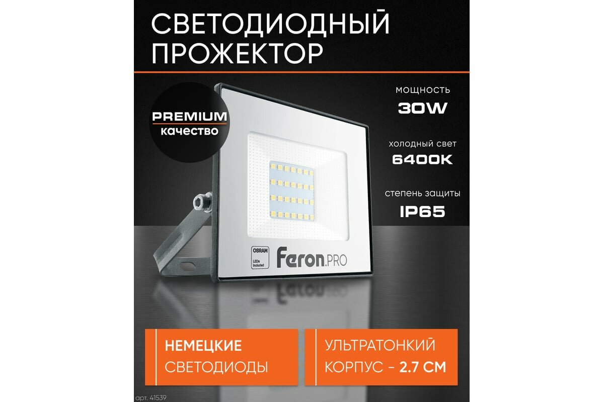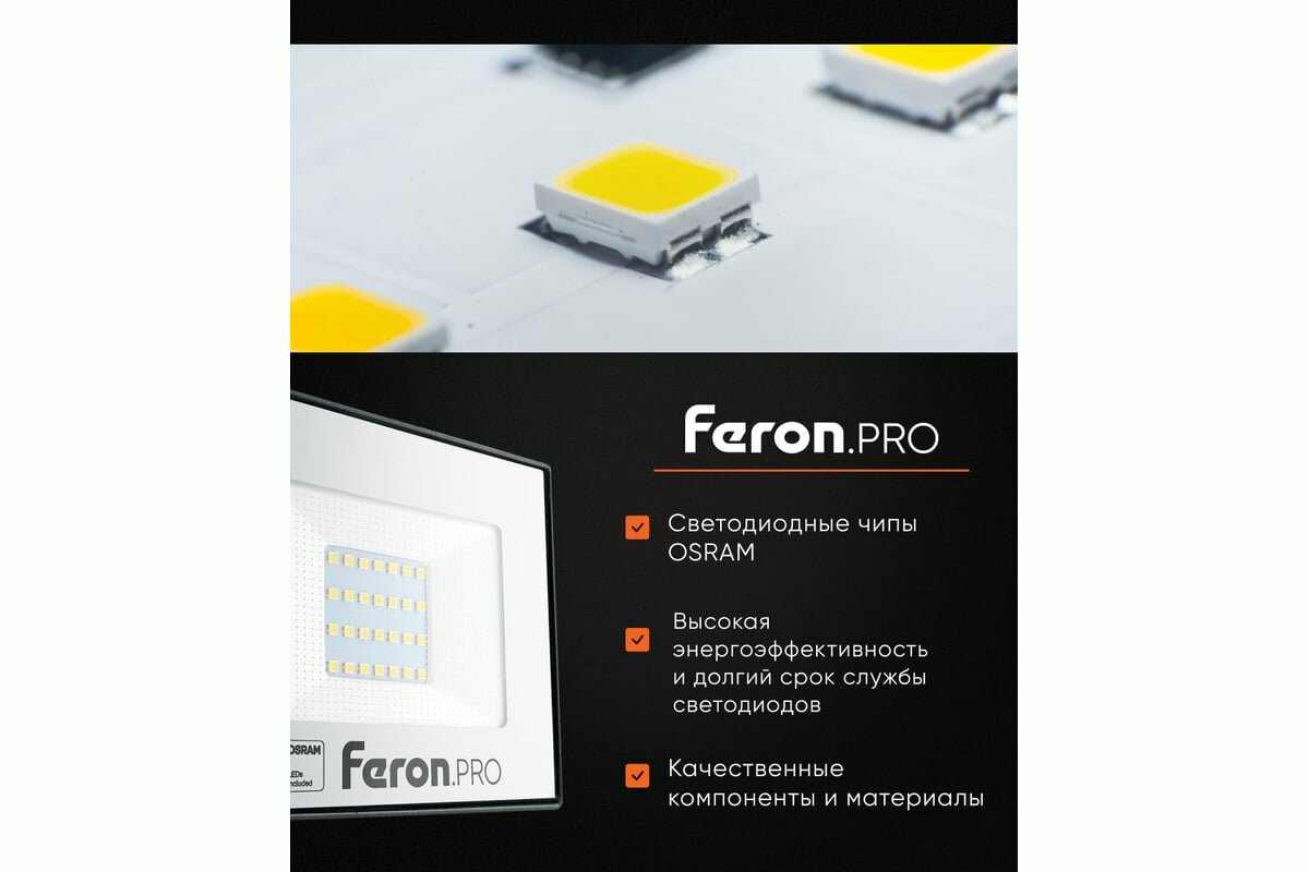 Светодиодный прожектор .PRO LL-1000 IP65 30W 6400K черный, FERON 41539 (1 шт.)