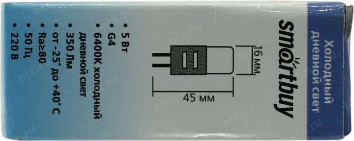 Smartbuy G4 220V 5W(350lm) 6400K 6K 240° 45x16 SBL-G4220 5-64K (арт. 639102) интересное: