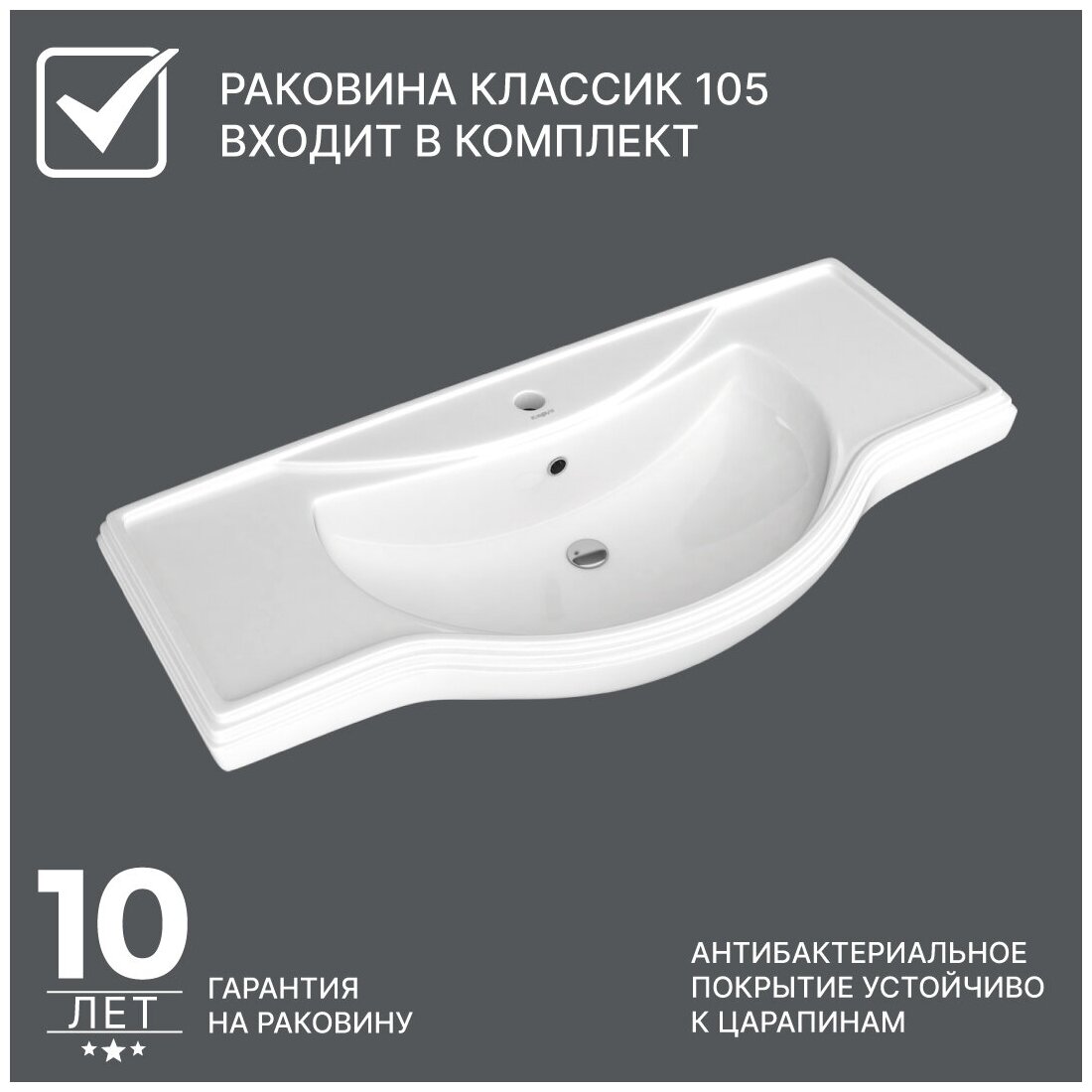 Тумба для ванной с раковиной / комплект / Sfarzoso Riccardo 105 раковина Kirovit Классик 105