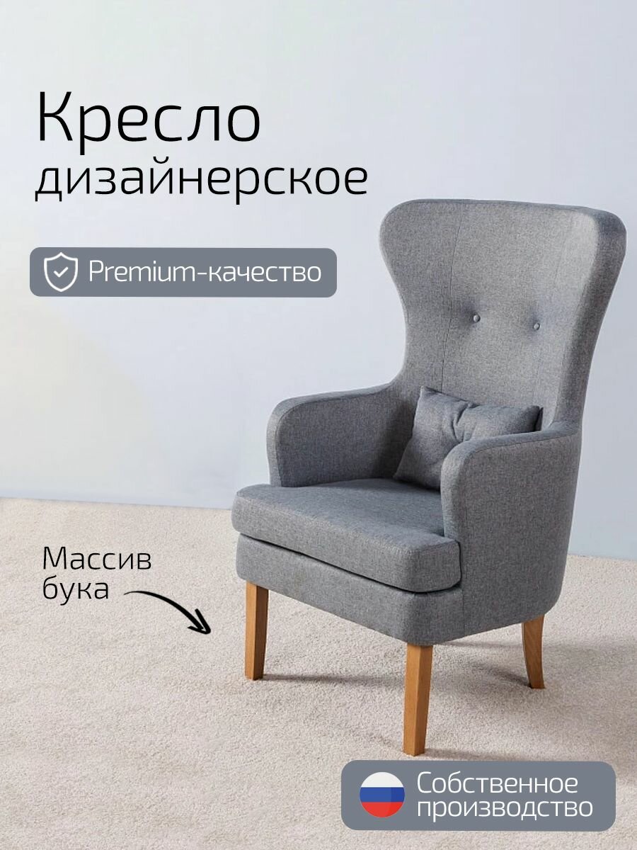 Кресло мягкое для дома, кресло в гостинную для отдыха Шафран Серый
