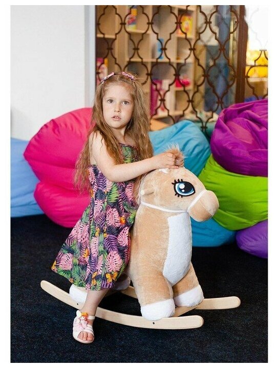 Детская качалка "Лошадка: Звёздочка", мягкая игрушка-каталка для малышей, цвет бежевый