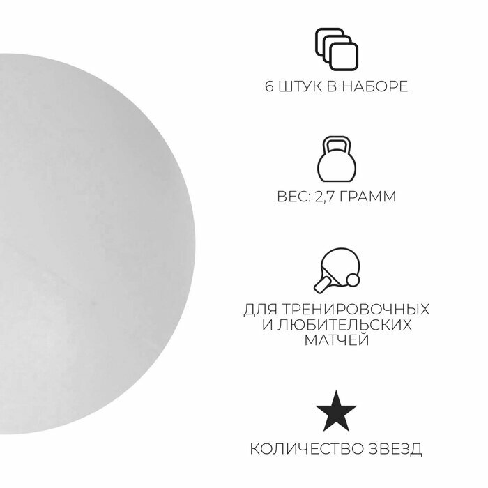 Мяч для настольного тенниса Torres Training, 1 звезда, набор 6 шт., цвет белый TORRES 2518988