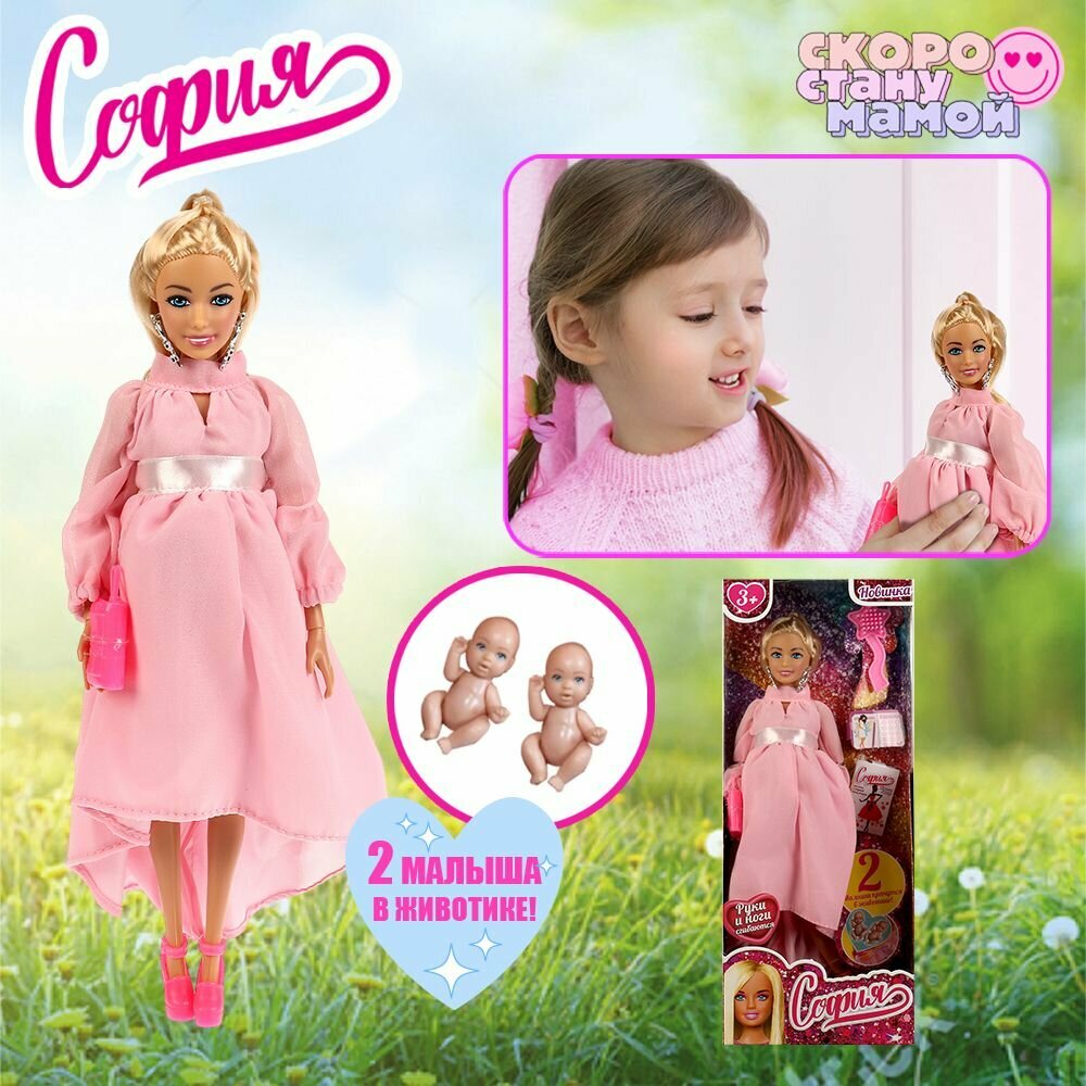 Кукла Карапуз София, 29 см, беременная двойней, руки и ноги сгибаются (329676)