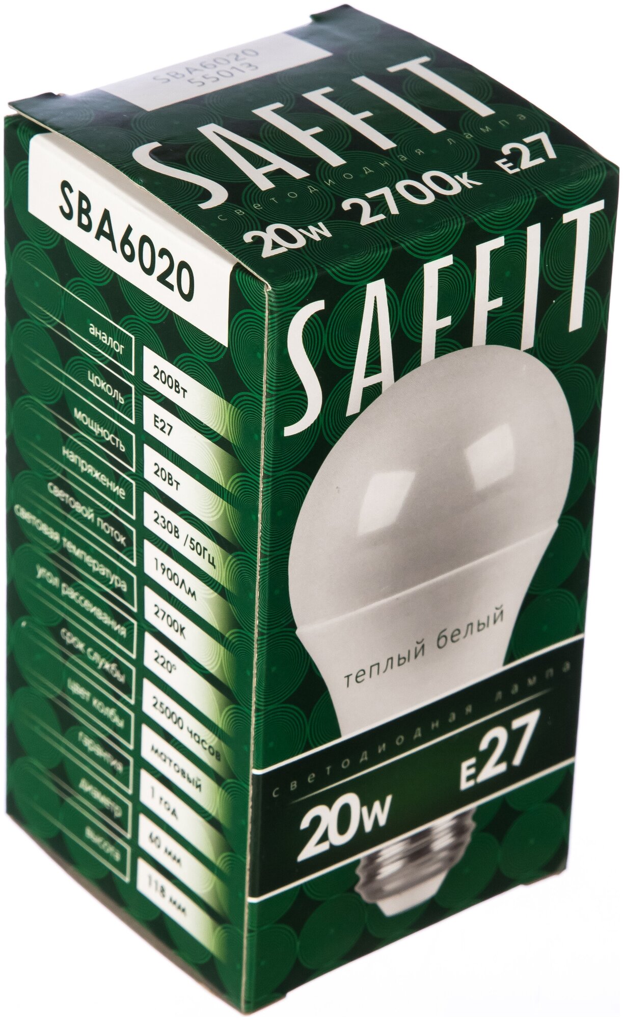 Купить Лампа светодиодная SAFFIT SBA6020 Шар E27 20W 2700K 55013