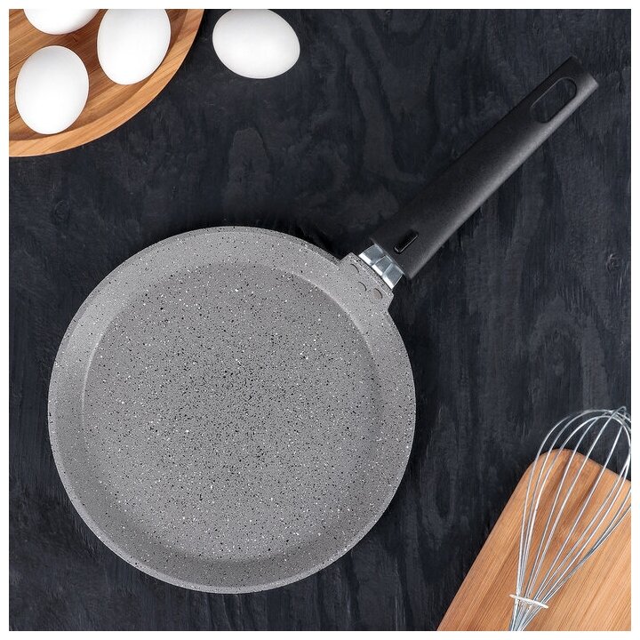 Сковорода блинная, d=24 см, пластиковая ручка, антипригарное покрытие, цвет тёмный мрамор