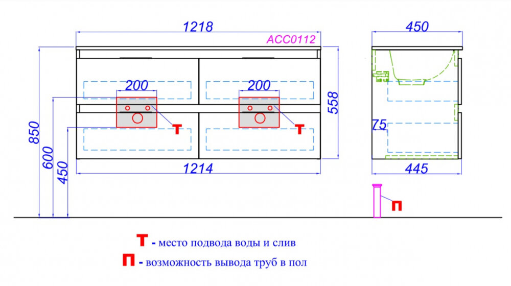 Тумба навесная без раковины Aqwella Accent 122х56х45 см ACC0112DZ