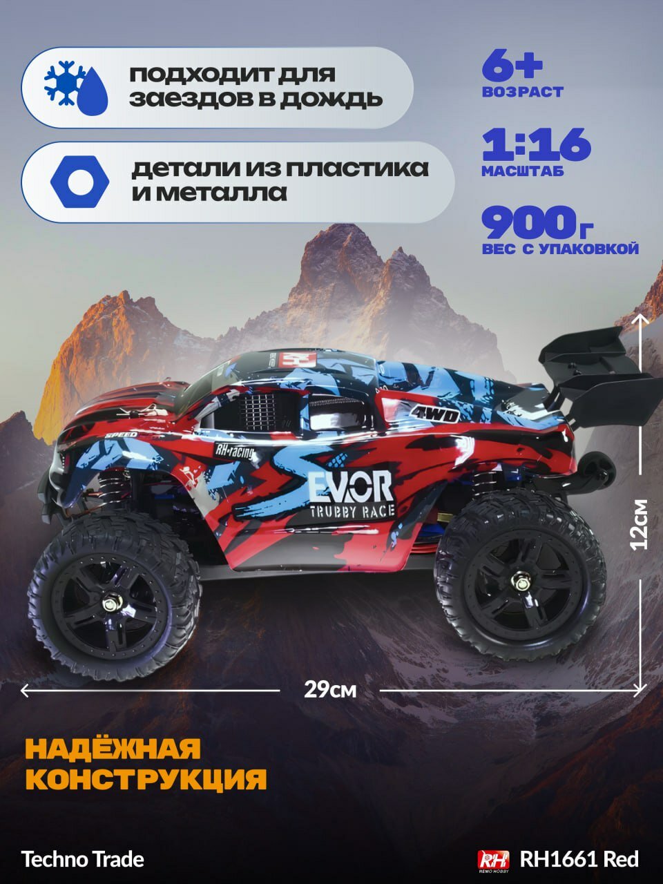 Радиоуправляемый трагги Remo Hobby S-EVOR 4WD 2.4G 1:16 RTR + Li-Ion и зарядное устройство RH1661