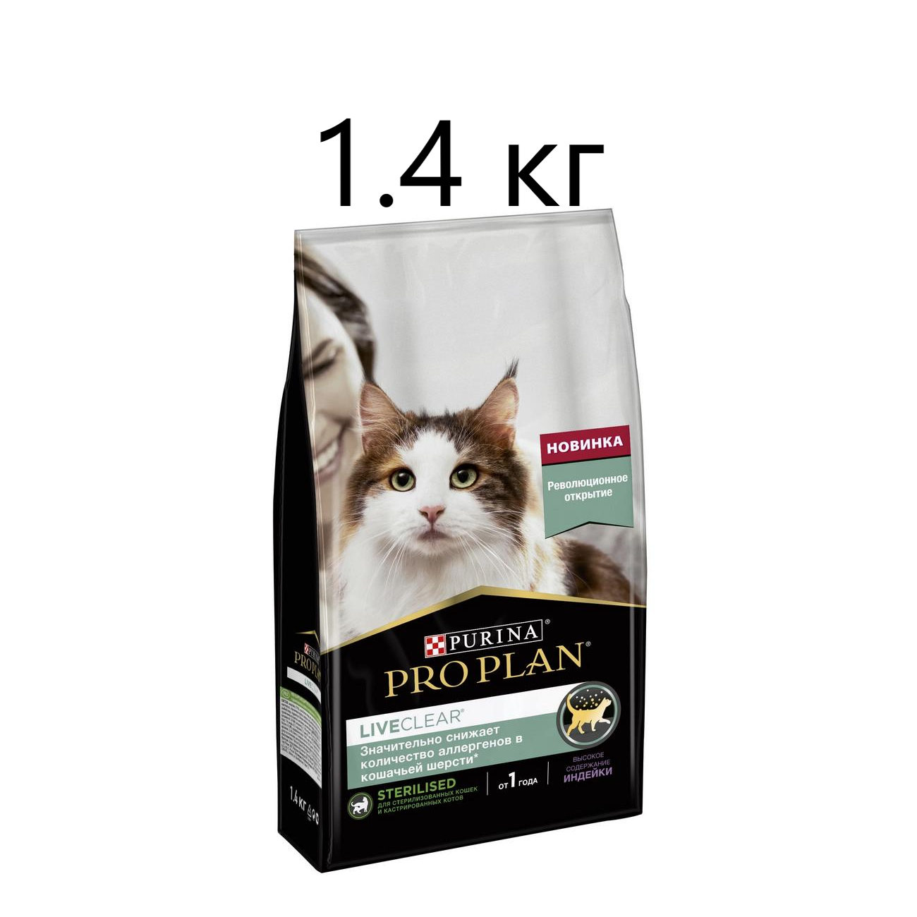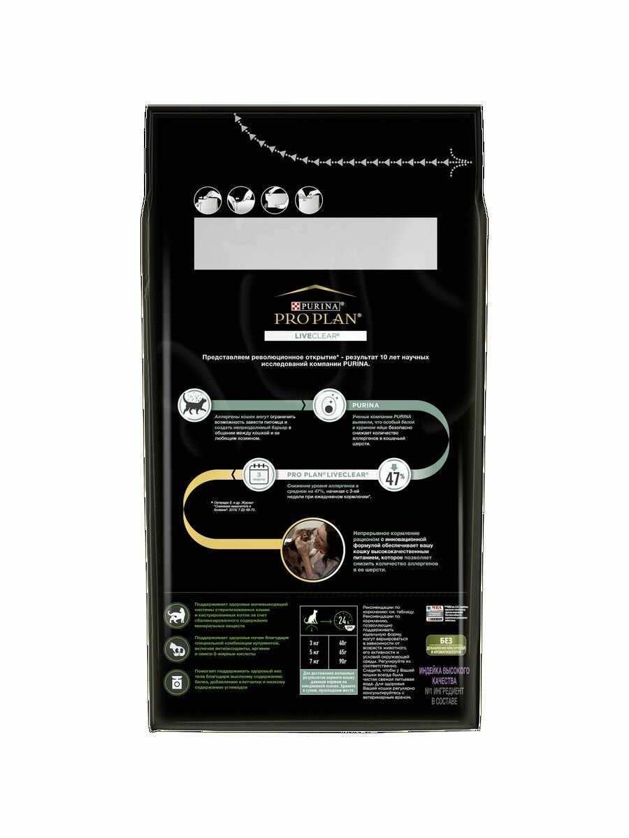 Сухой корм Pro Plan® LiveClear для стерилизованных кошек, снижает количество аллергенов в шерсти, с индейкой, пакет, 1,4 кг