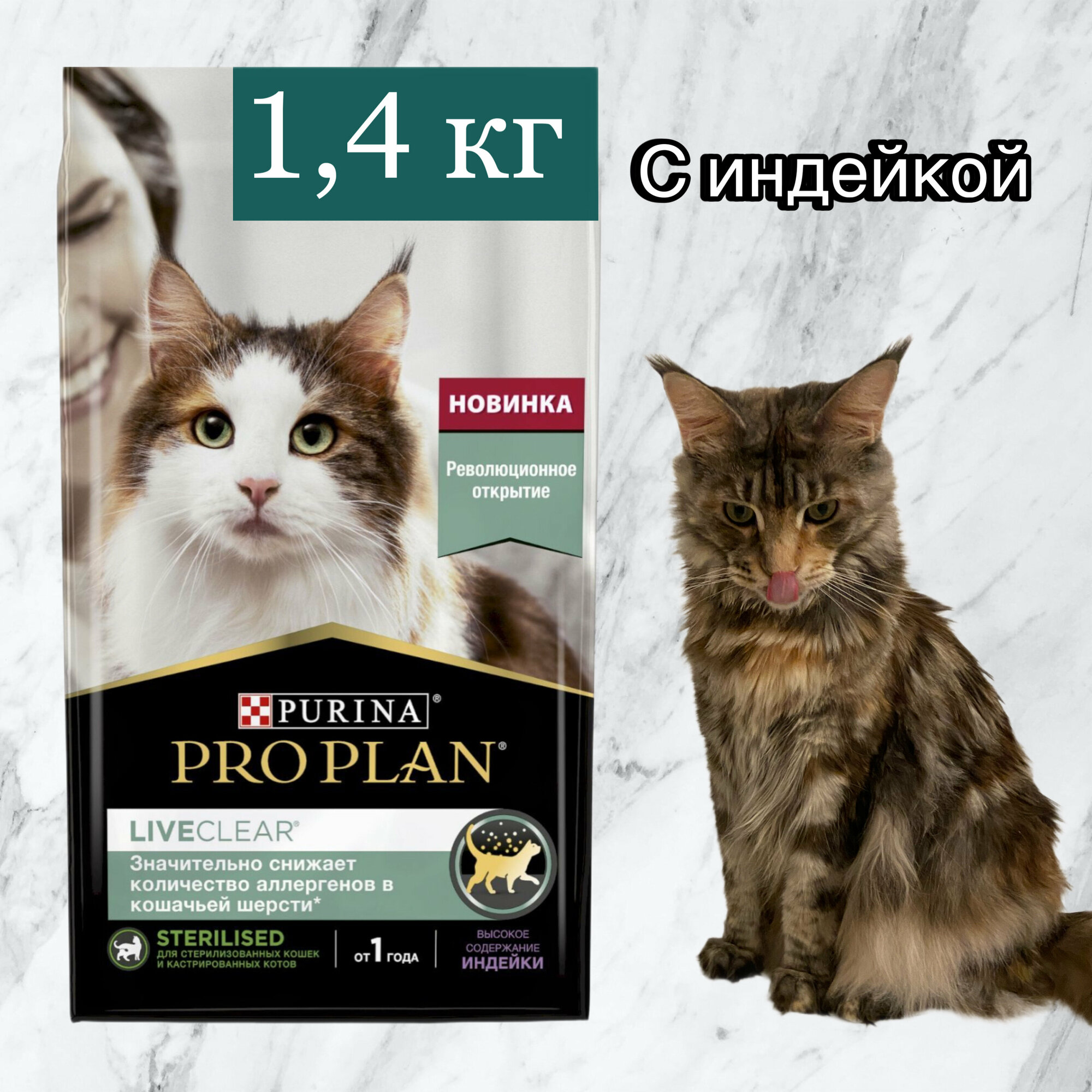 PRO PLAN LIVECLEAR для стерилизованных кошек, снижает количество аллергенов в шерсти, с индейкой (1,4 кг)