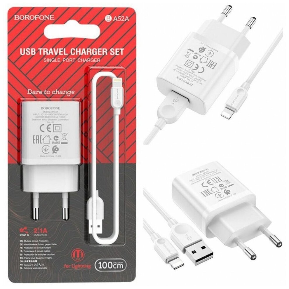 Сетевое зарядное устройство Borofone BA52A, USB, 2.1 А, кабель Type-C, 1 м, белое