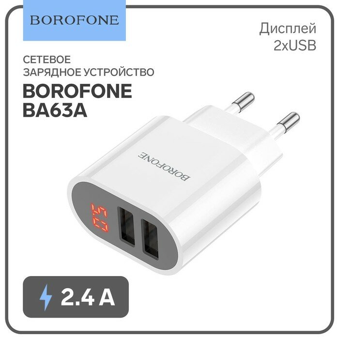 Сетевое зарядное устройство Borofone Ba63a, 2xUSB, 2.4 А, дисплей, белое Borofone 9088811