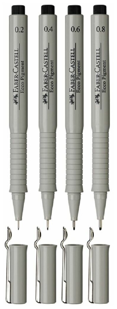 Набор капиллярных ручек Faber-Castell "Ecco Pigment", 4 ручки черные, 0,2/0,4/0,6/0,8мм