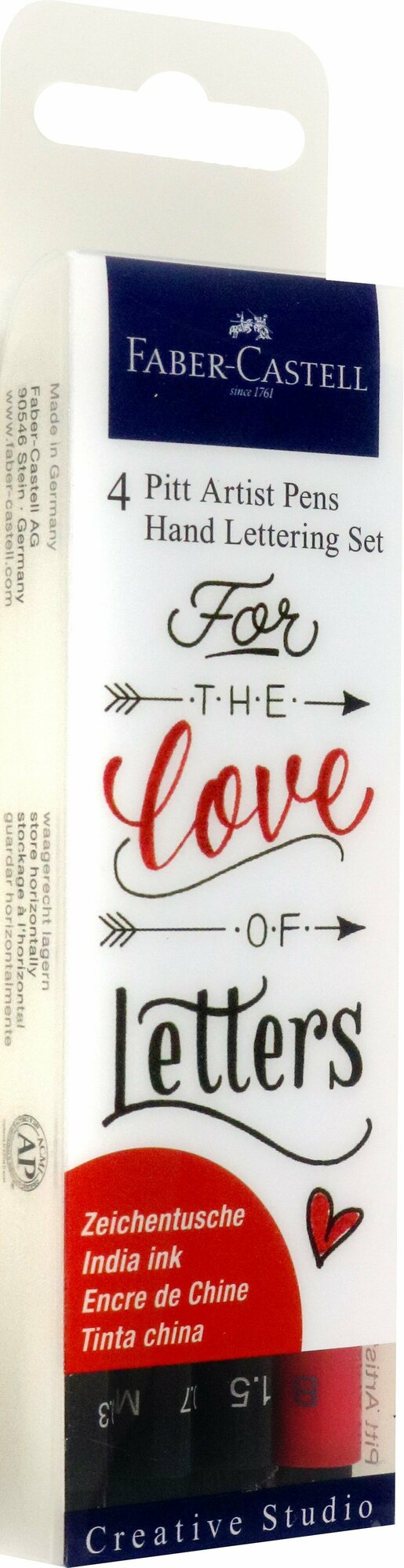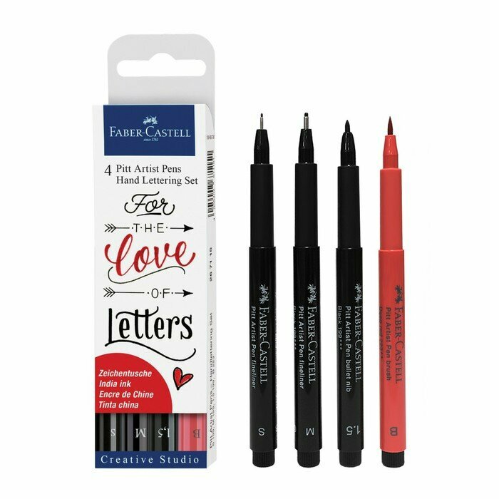 Набор капиллярных ручек Faber-Castell Pitt Artist Pen Lettering, 4 шт, 0,3/0,7/1,5мм/Brush