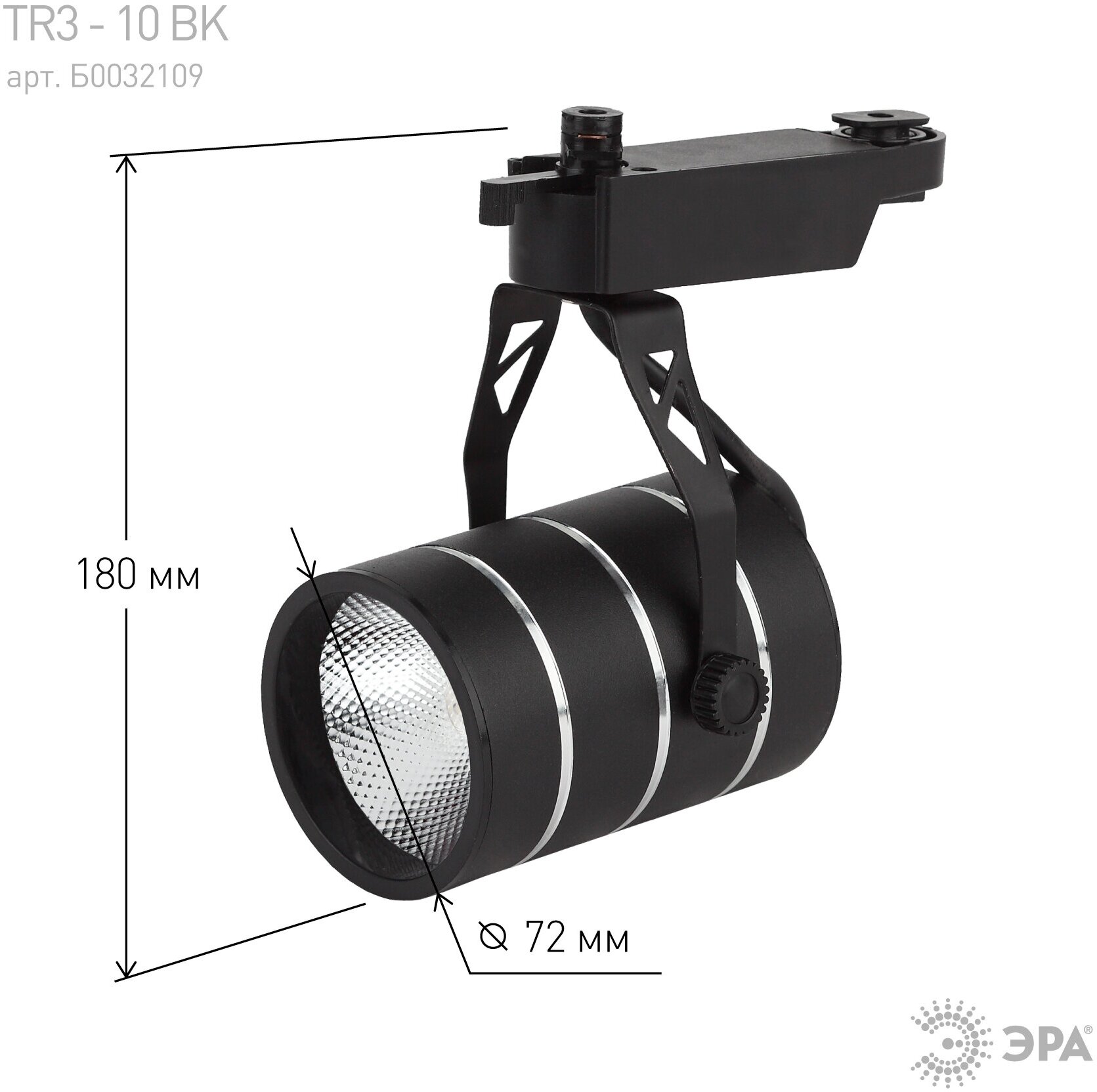 Трековый светильник однофазный ЭРА TR3 - 10 BK светодиодный COB 10Вт 4000К 700Лм черный