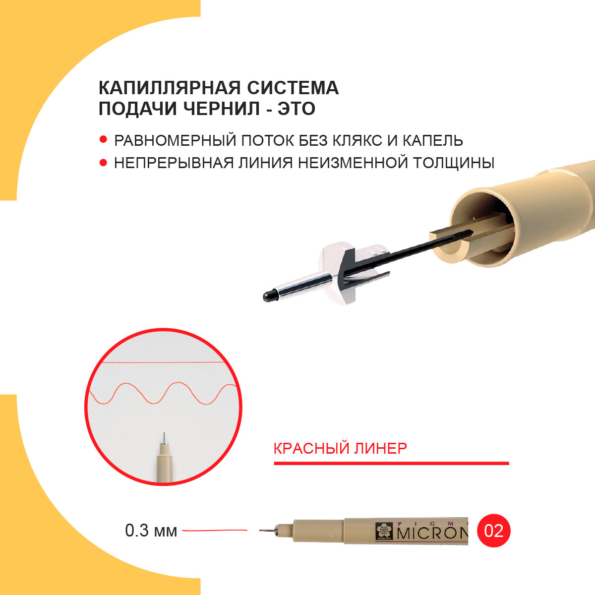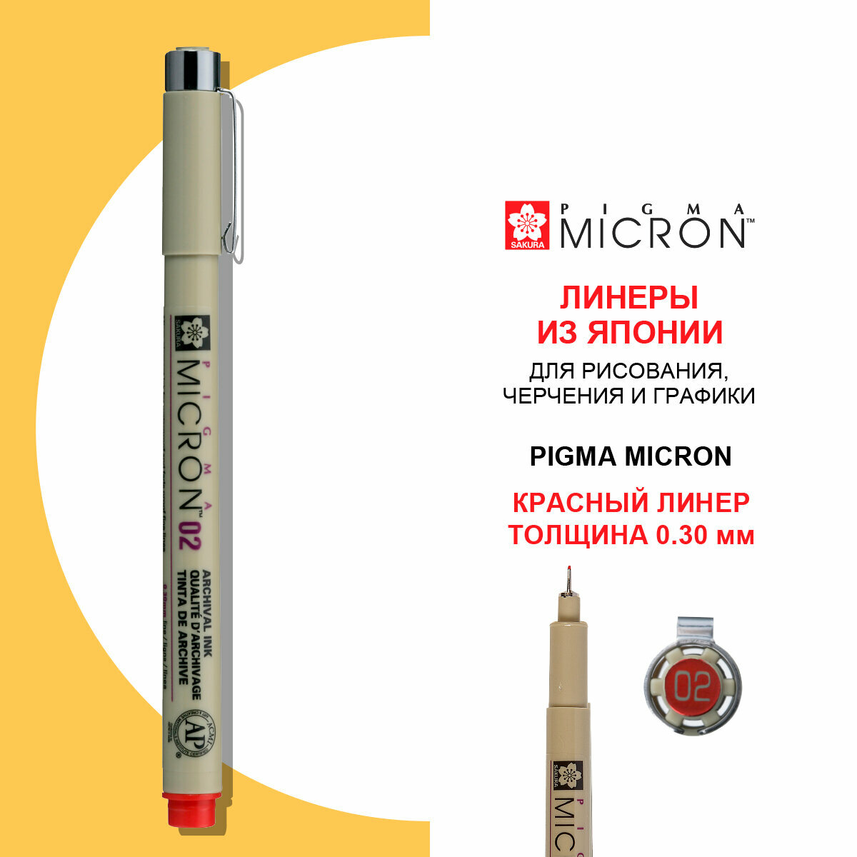 Ручка капиллярная Sakura Pigma Micron 02, толщина линии 0.3 мм, цвет красный
