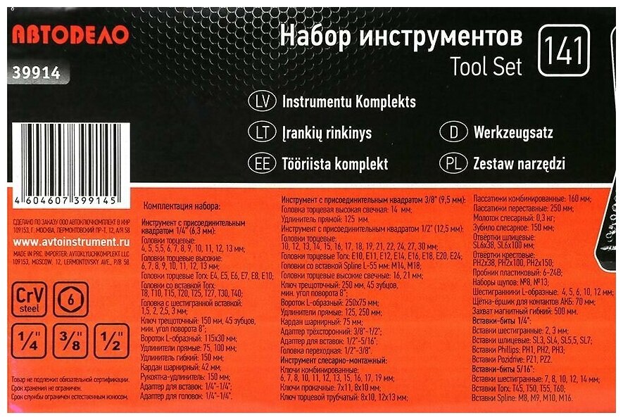 АвтоDело набор инструмента 141 пр. 1/2DR 1/4DR 39914 16030