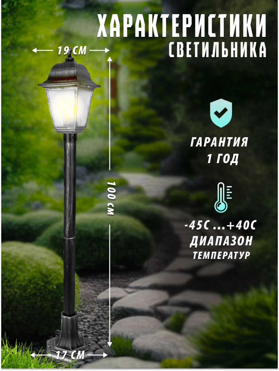 Уличный светильник столб CAMELION черный/серебро E27, 60Вт, IP44, 220В