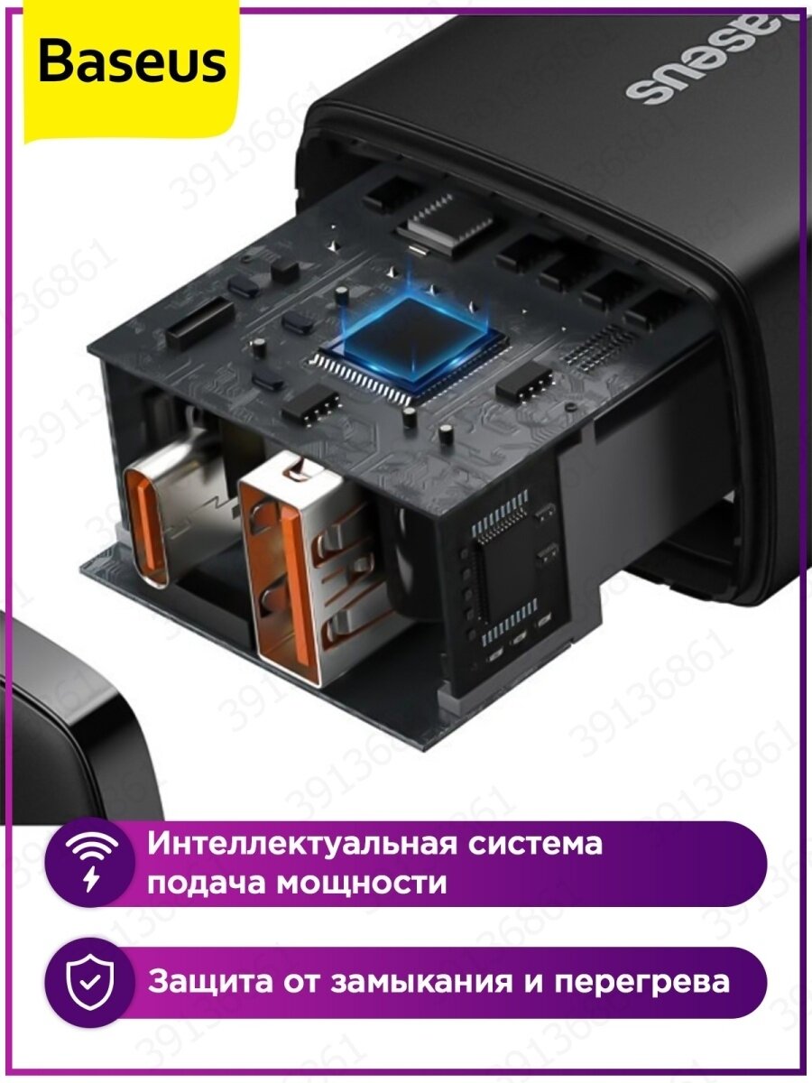 Сетевое зарядное устройство 2 входа, 20 Вт, Baseus Compact Quick Charger, быстрая зарядка для айфон и андроид