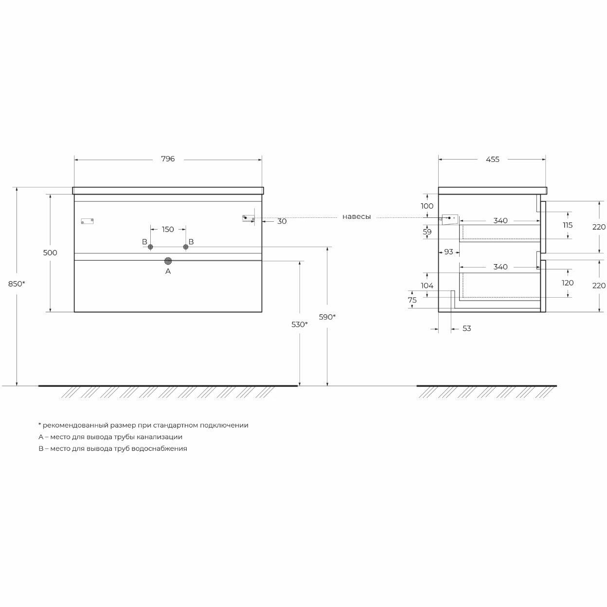 Тумба под раковину подвесная с двумя ящиками 800x450x500 BelBagno ALBANO Rovere Nature Grigio ALBANO