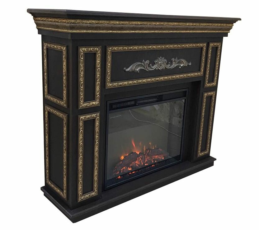 Электрокамин FlameKamin Аделина BL с патиной античное золото с очагом Sparta 25.5 LED (камин электрический)
