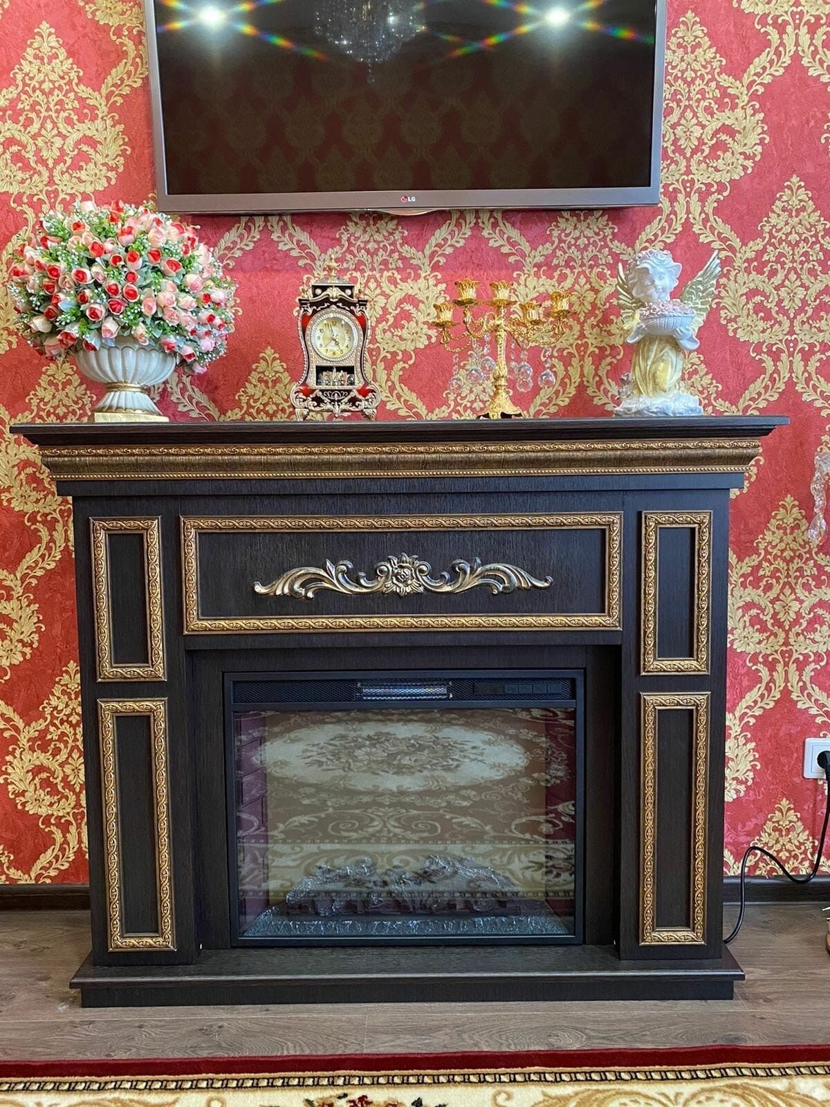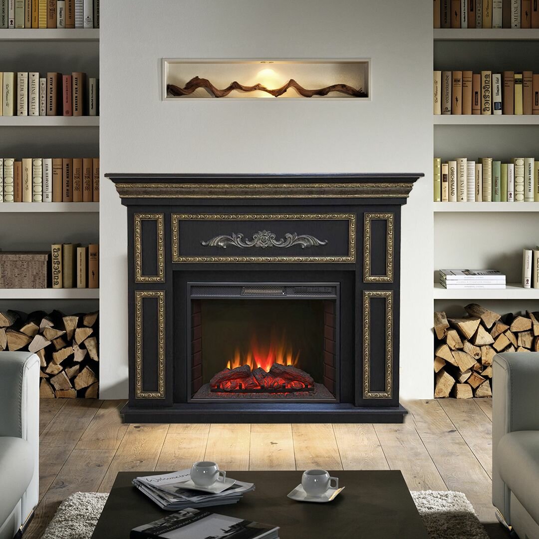 Электрокамин Аделина WT с патиной античное золото с очагом Sparta 25.5 LED (камин электрический)