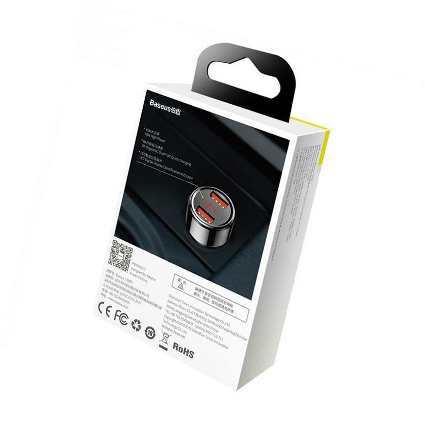 Автомобильное зарядное устройство Baseus Magic Series Dual QC digital display for intelligent quick charging and car charging of 45W, черный