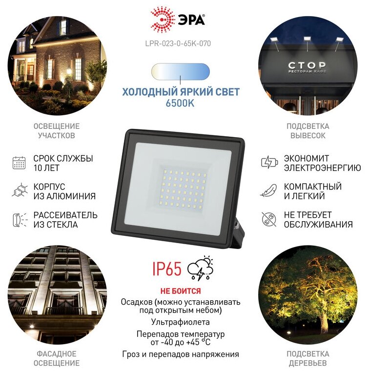 Прожектор светодиодный ЭРА LPR-023-0-65K-070, 70 Вт, свет: холодный белый