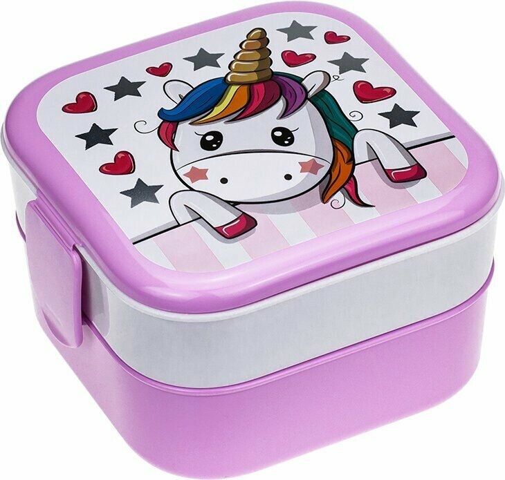 Контейнер для обеда Единорог, 0,4+0,4 л, цвет розовый IDEA 4738111 .