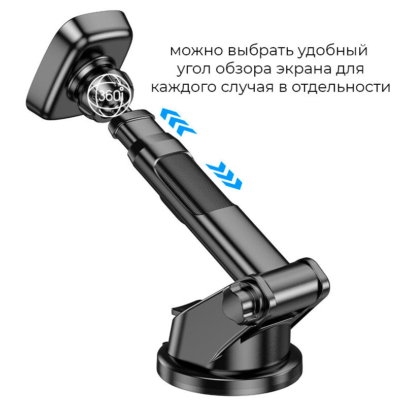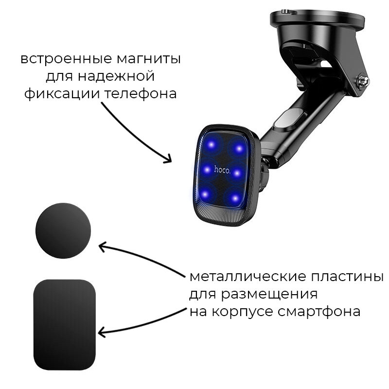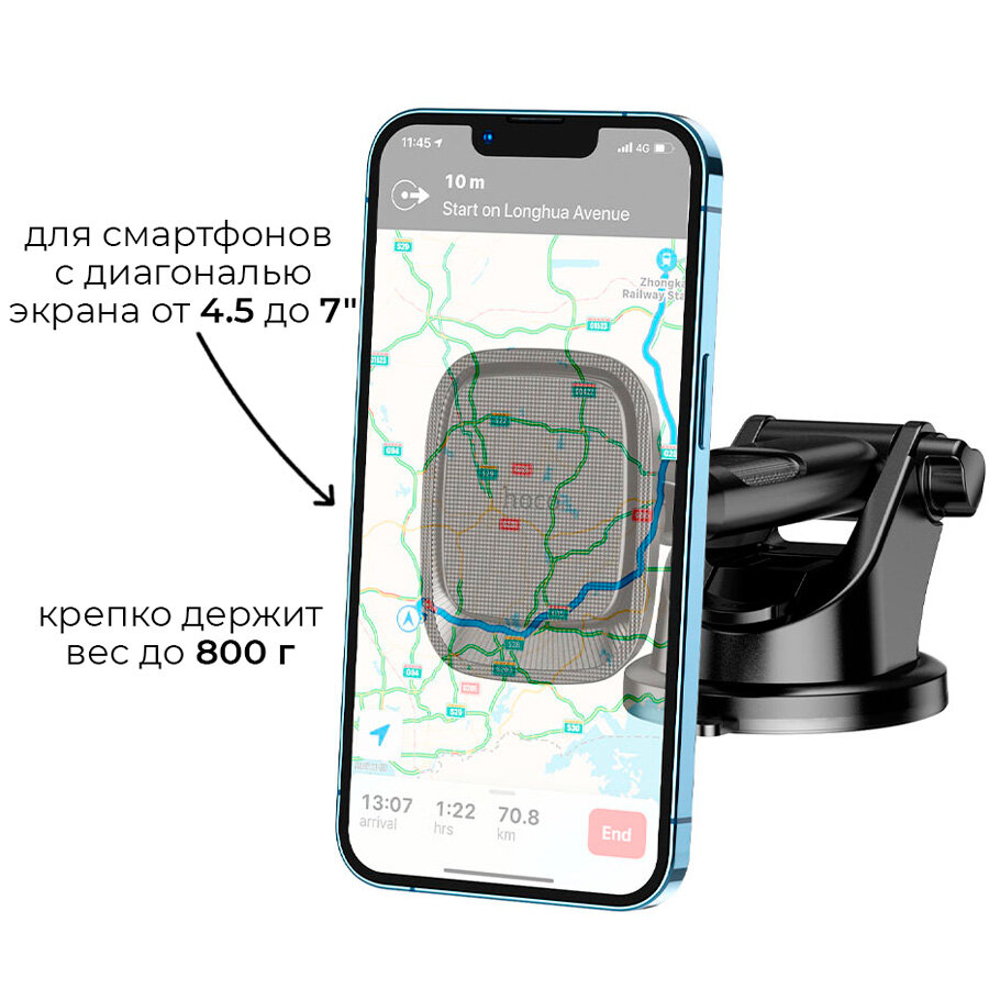 Автомобильный держатель HOCO CA116 Blue Shark, магнитный, на присоске, 4,5-7", чёрный металлик (66)