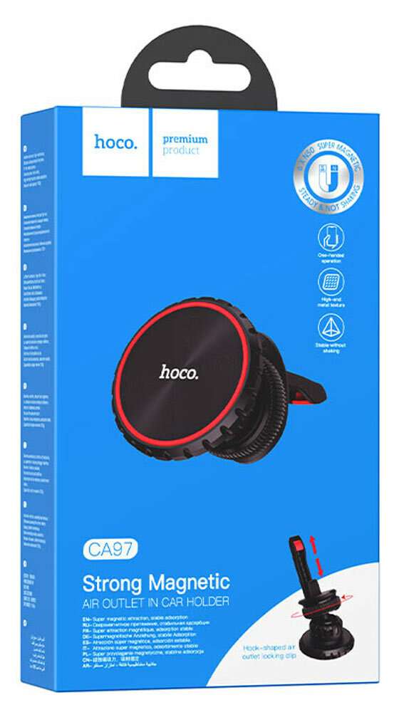 Автомобильный держатель HOCO CA97 City, магнитный, на воздуховод, черный+красный