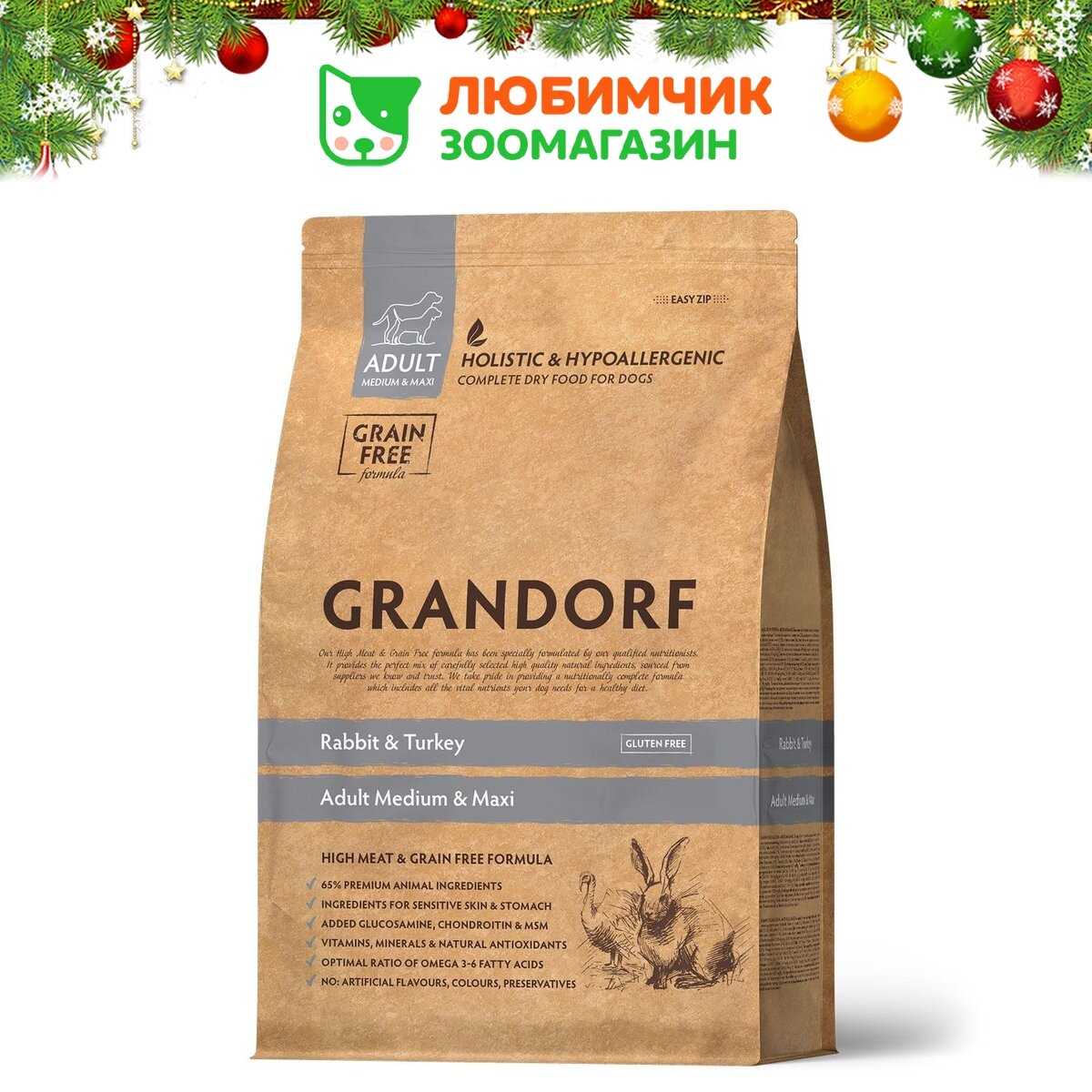GRANDORF GRAIN FREE DOG ADULT MEDIUM & MAXI RABBIT & TURKEY беззерновой для взрослых собак средних и крупных пород с кроликом и индейкой (10 кг)